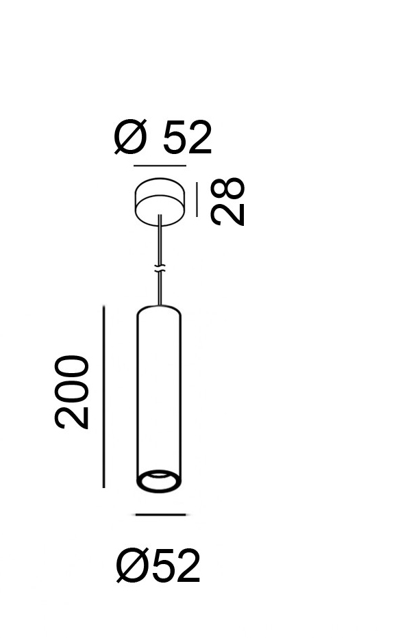 | Rozměry | d=52mm, h=200mm, vč závěs kabelu l=1500mm, lze zkr. Uváděné rozměry jsou pouze informativní a výrobce je může změnit. |