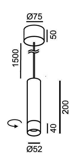 Rozměry d=52mm, h=200mm, vč závěs kabelu l=1500mm, lze zkr. Uváděné rozměry jsou pouze informativní a výrobce je může změnit.