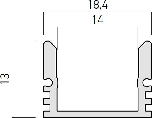 PRF - Přisazený profil pro LED pásky, materiál hliník, povrch eloxovaný, pro LED pásky w= 14mm, rozměry 13x18,4mm, délka l=3000mm.