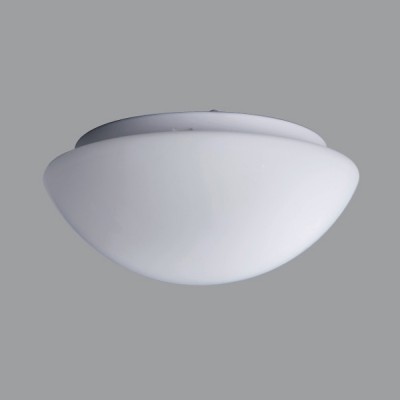Stropní svítidlo, základna kov, povrch bílá, difuzor sklo triplex opál, pro žárovky, nebo LED, 230V, IP20, nebo do koupelny IP44, rozměry d=250mm, h=110mm, úchyt skla bajonet