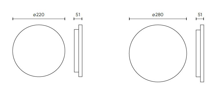 Venkovní stropní svítidlo, těleso plast, povrch bílá, dif plast opál, LED 18W/24W, teplá 3000K nebo neutrální 4000K, 230V, IP54, tř.2, rozměry dle typu.