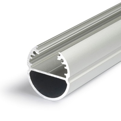 BARBULA profil - Kruhový profil pro LED pásky do skříně, tvar válce, materiál hliník, povrch elox šedostříbrný mat, max šířka LED pásků w=20mm, rozměry 28x29,5mm, l=2000mm, svítí dolů