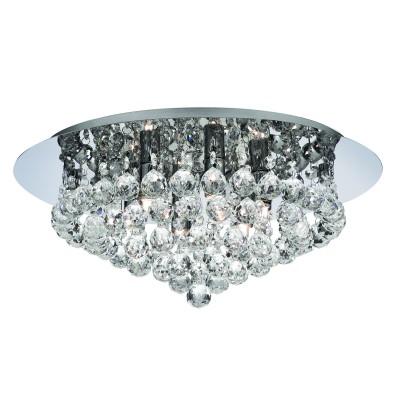 HANNA - Stropní přisazené svítidlo, těleso kov, povrch chrom šedostříbrná lesk, křišťálové ověsy, pro žárovku 6x7W, G9, 230V, IP20, tř.1. rozměry d=450mm h=200mm