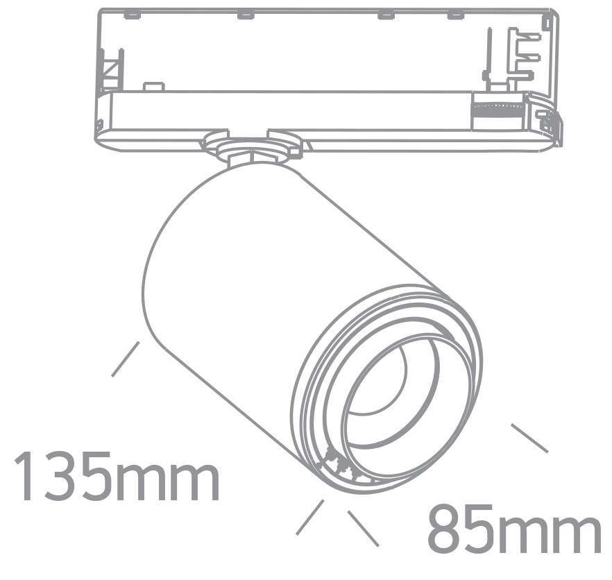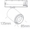 Bodové svítidlo do 3F lišty, nast. směr svícení, těleso hliník, povrch černá, LED 30W, 3000lm, teplá 3000K/neutrální 4000K, ZOOM nast vyzař. úhel 20°-60°, Ra90, 230V, IP20, tř.2, rozměry d=85mm, h=135mm.