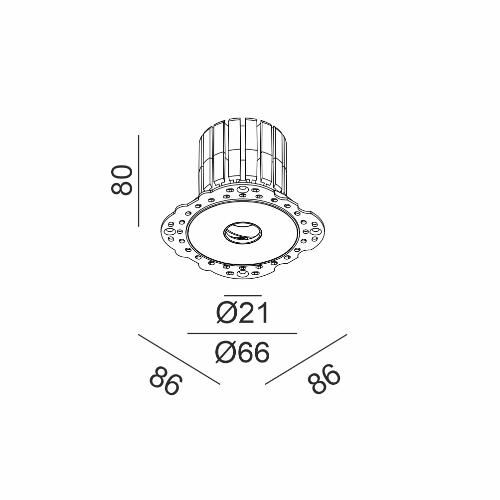 Stropní, podhledové, bodové svítidlo, těleso hliník, povrch bílá, LED 12,6W, 980lm, teplá 2700K/3000K/neutrální 4000K, vyzař. úhel 66°, Ra90, 230V, IP20, rozměry d=66mm, h=80mm.