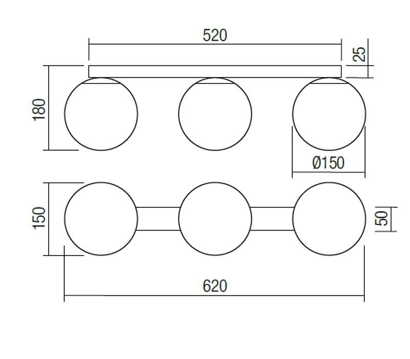 Stropní svítidlo, těleso kov, povrch zlatá mat/černá mat, difuzor sklo opál, pro žárovku 3x42W, E27, 230V, IP20, tř.1. rozměry 520x180x150mm.