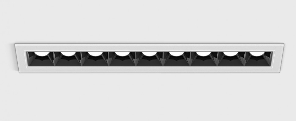 Stropní podhledové bodové buňkové svítidlo, těleso hliník, povrch černá, rámeček černá/bílá, LED 14W, 1005lm, teplá 3000K/neutrální 4000K, vyzař. úhel 36°, Ra90, 230V, IP20, rozměry 218x45x38mm.