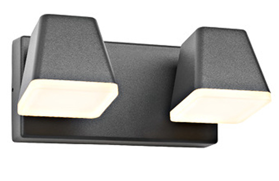 BULL SQ II 20W, IP54 - Nástěnné venkovní svítidlo, nastav. směr svícení, těleso hliník, povrch černá antracit, difuzor plast opál, LED 20W, teplá 3000K, 1300lm, 230V, IP54, tř.1, rozměry 273x123x163mm.
