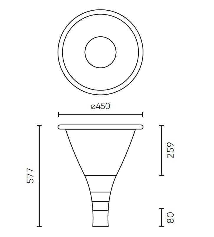 | Rozměry | hlavice d=450mm, h=577mm, montáž na stožár d=60mm. Uváděné rozměry jsou pouze informativní a výrobce je může změnit. |