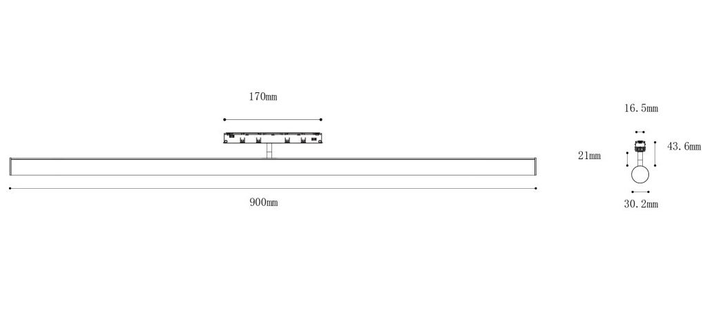 Svítidlo do mag. systému, kov, černá, dif plast opál, smart Tuya dle typu, LED 18W/1675lm, 24W/2098lm, teplá 3000K/neutrální 4000K, stmív. dle typu, vyz. úhel 150°, Ra90, 48V, IP20, rozměry dle typu.