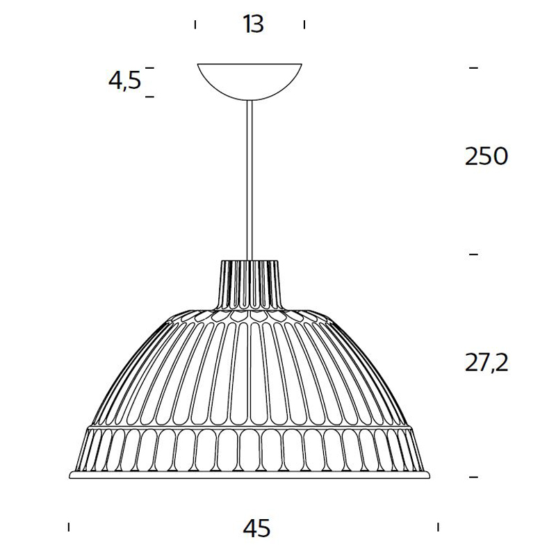 | Rozměry | d=450mm h=272mm, včetně závěsu l=2500mm, lze zkrátit. Uváděné rozměry jsou pouze informativní a výrobce je může změnit. |