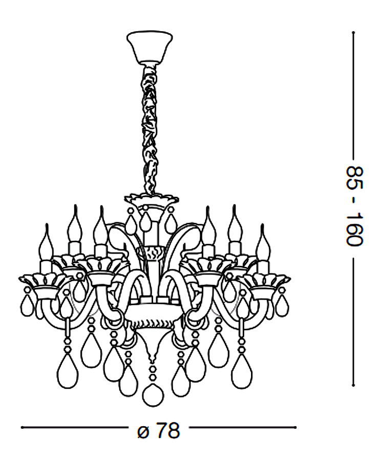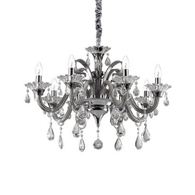 Závěsné svítidlo, lustr 8 ramen, rám kov, povrch chrom, ramena vyfuk sklo, povrch šedá, transparentní, slonovinová bílá, chrom detaily, skleněné ověsy, pro žár 8x40W, E14, 230V, IP20, tř.1, d=780mm, vč závěsu l=1550mm lze zkr