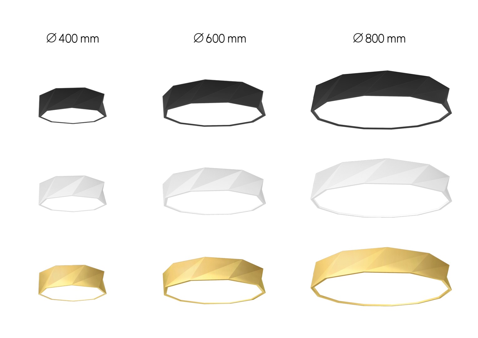 Stropní svítidlo, kov, bílá/černá/zlatá, dif plast opál, LED 31W/43W/60W, smart TUYA, Matter, Zigbee 3.0., dálk ovl. (součástí) nebo mob. tel. CCT nast teplota teplá 2700K - denní 6500K, stmív., 230V, IP20, rozměry dle typu.