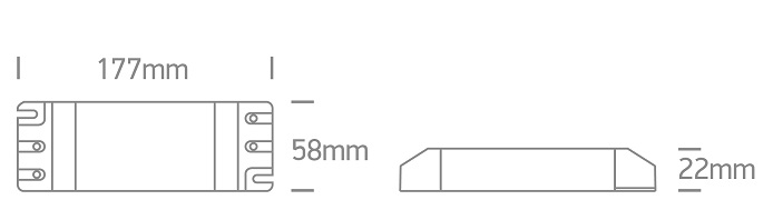 Stmívatelný zdroj LED driver pro LED 12-50W/20-150W/75-200W;, 24VDC, TRIAC, 230V, IP20, tř.2, rozměry dle typu.