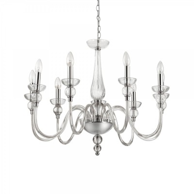 Závěsné svítidlo, lustr s rameny, těleso kov a sklo čiré, povrch chrom, pro žárovku 9x40W/12x40W, E14, 230V, IP20, rozměry dle typu.