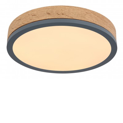 Stropní svítidlo, těleso kov černá grafit/bílá mat a dřevo světlé, difuzor plast opál, LED 12W/1600lm, 24W/3200lm, teplá 3000K, 230V, IP20, tř.1, rozměry dle typu.