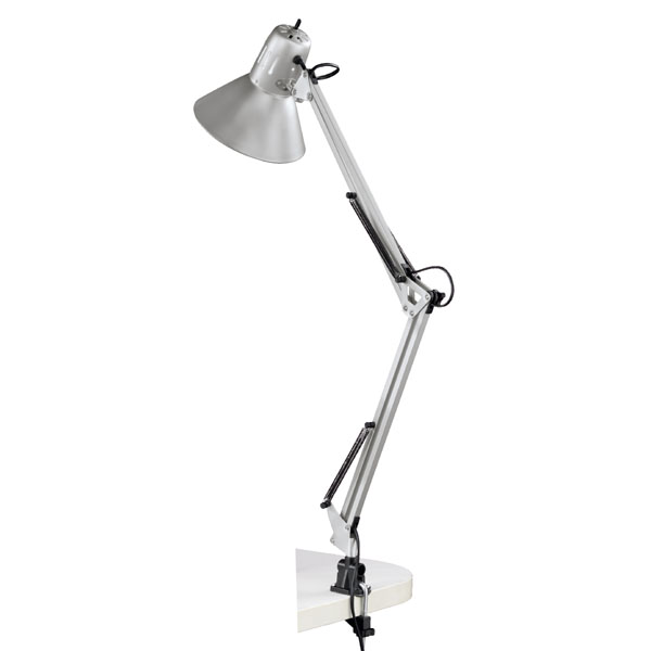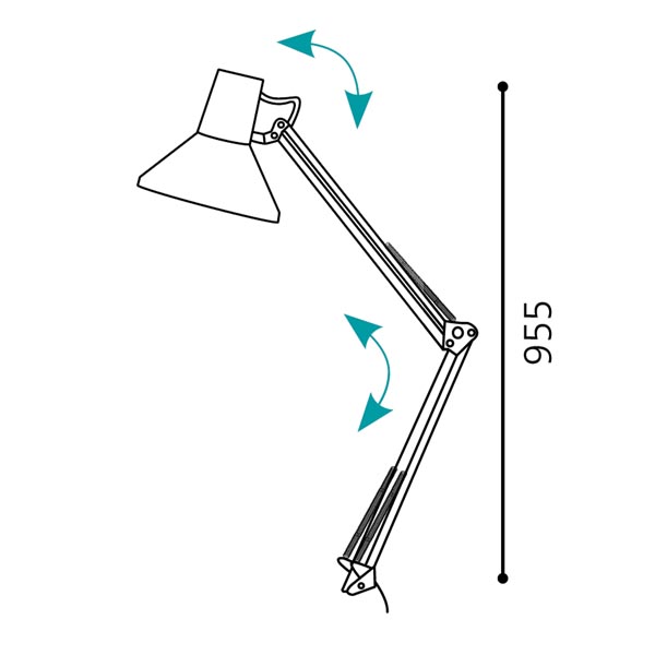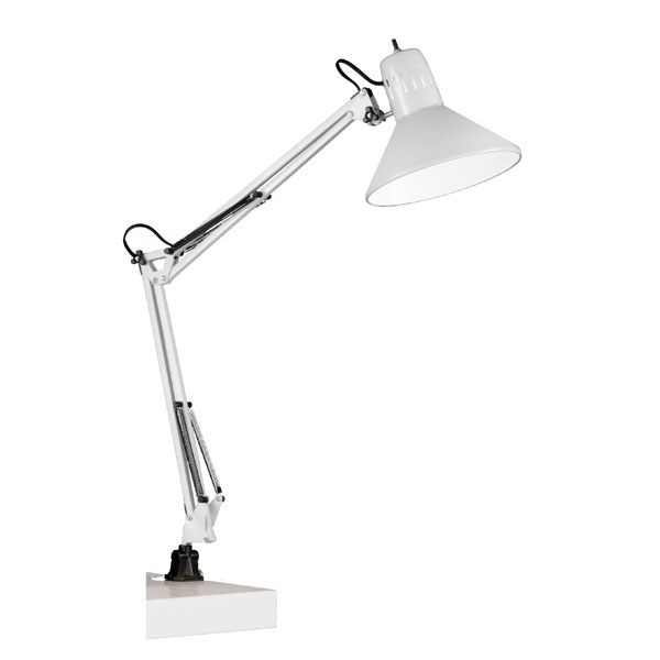DELPHI - VÝPRODEJ Stolní lampa, těleso kov, povrch bílá, pro žárovku 1x40W, E27, A60, 230V, IP20, dvě ramena celkem l=955mm, s vypínačem.