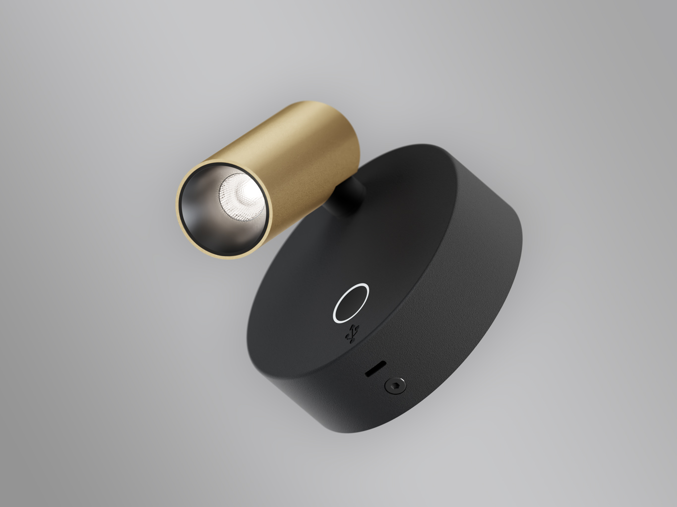Nástěnná bodová lampa, základna hliník, povrch bílá/černá/černá a zlatá, LED 3,5W, 210lm, teplá 2700K, Ra90, 230V, IP20, rozměry d=85mm, základna obsahuje USB připojení vč dotyk vypínače