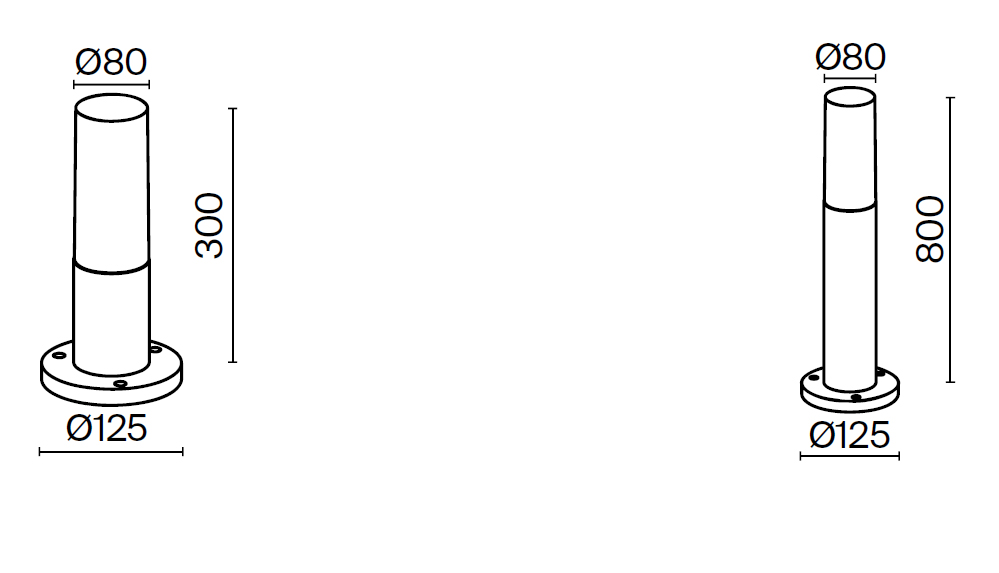 Sloupkové venkovní svítidlo, těleso kov, povrch šedá/černá, difuzor plast opál, pro žárovku 1x60W, E27, 230V, IP54, rozměry d=125mm, výška dle typu.