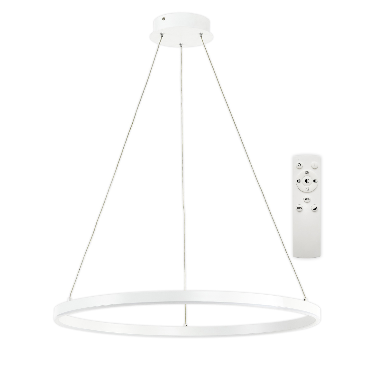 Závěsné svítidlo, kov, bílá, černá, difuzor plast opál, LED 30W, 3000lm, dálkovým ovladačem stmívatelné 10-100%, nastavitelná teplota CCT teplá 3000K - denní 6500K, Ra80, 230V, IP20, d=700mm, lankový závěs h=1200mm lze zkráti