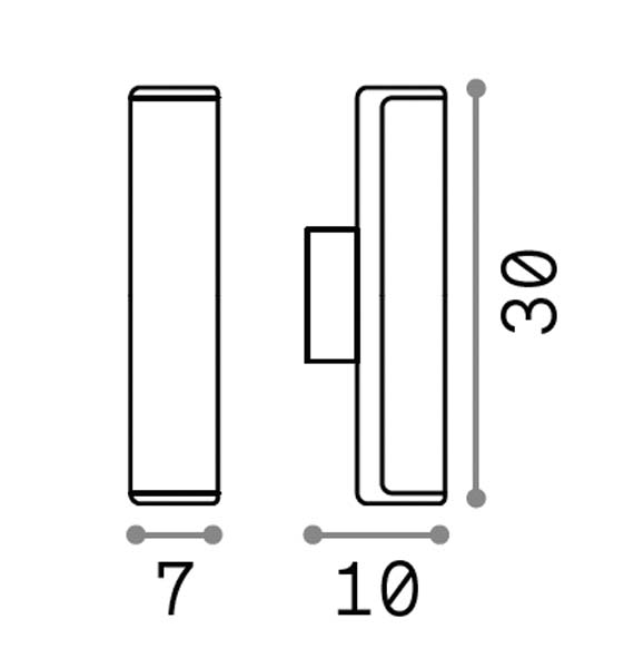Nástěnné venkovní svítidlo, základna hliník, povrch lak dle typu, difuzor plast opál, LED 1x10,2W, teplá 3000K/660lm, neutrální 4000K/702lm, 230V, IP44, tř.1. rozměry 70x100x300mm