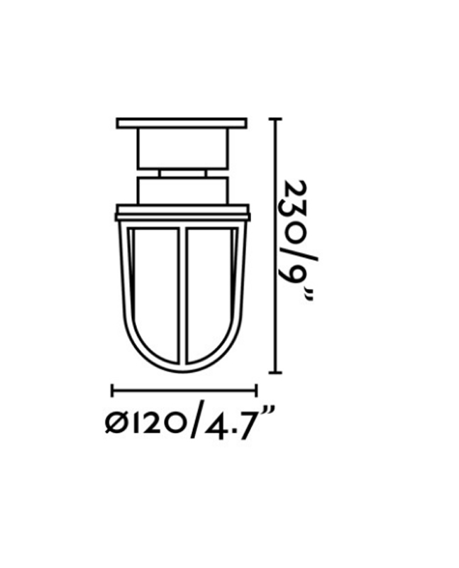 MASA 1x15W, E27 - Stropní přisazené venkovní svítidlo, těleso mosaz, krycí sklo čiré, pro žárovku 1x15W, E27, 230V, IP44, tř.1. rozměry d=120mm, h=230mm.