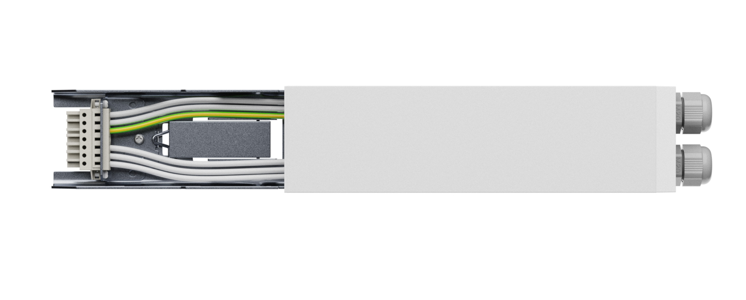 FRAGOR TRUNK 230V koncovka - Napájecí koncovka 230V, IP20, pro napájení lištového systému, materiál hliník, povrch bílá, rozměry 383x65x65mm.