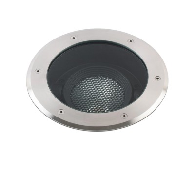 Zemní venkovní svítidlo, těleso hliník, ráměček nerez broušená a černá, krycí sklo čiré, LED 29W, 2900lm, teplá 3000K, vyzař. úhel 10°/38°, Ra80, 230V. IK08, IP67, statická zátěž až 2000kg, rozměry d=260mm, h=265mm.