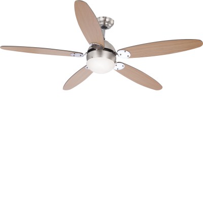 AZURA - Stropní ventilátor s osvětlením, těleso kov, povrch nikl, oboustranné lopatky dřevo světlé a šedá, dif sklo opál, pro žárovku 1x60W, E14, rozměry d=1320mm, h=406mm, ovládání pomocí tahového spínače