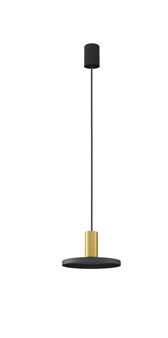 Závěsné svítidlo, těleso kov nebo kov a mosaz, povrch černá, bílozlatá, černozlatá, pro žárovku 1x10W, GU10, 230V, IP20, tř.1, rozměry d=200mm, h=130mm, vč. závěs kabelu l=1300mm, lze zkrátit