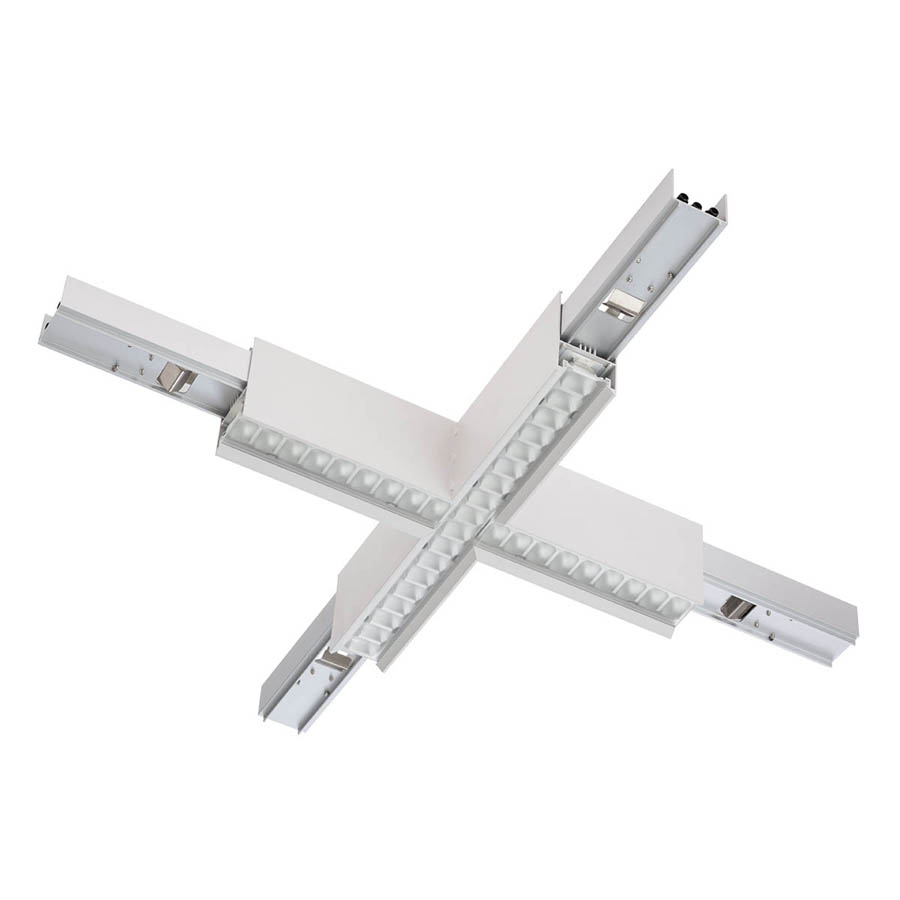 Stropní, přisazené/závěsné svítidlo spojka X, materiál hliník, povrch bílá, nebo černá, krycí plast transp, LED 30W, teplá 3000K, nebo neutrální 4000K, UGR<16, 230V, IP20, Ra80, tř.1, rozměry 590x567x68mm