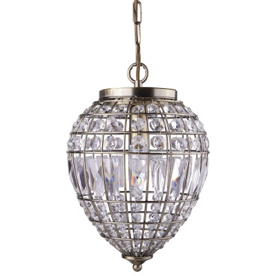 Pineapple, PENDANT - Závěsné svítidlo, základna kov, těleso kov, povrch mosaz antická lesk, difuzor sklo křišťál, pro žárovku 1x10W, E14, 230V, IP20, tř.1. rozměry těleso d=230mm h=340mm, vč závěsu l=930mm, lze zkrátit