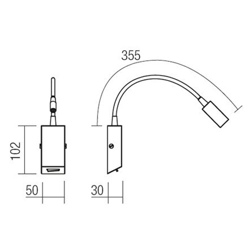 Nástěnné svítidlo, rameno flexibilní husí krk, základna kov, těleso kov, krycí sklo čiré, LED 1x3W, teplá 3000K, 240lm, 230V, IP20, tř.1. rozměry 50x30x457mm