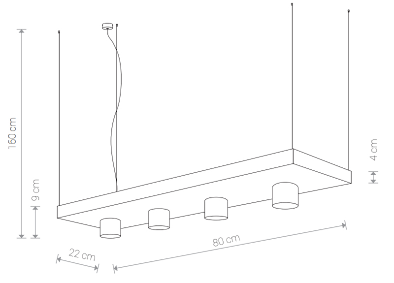 Závěsné svítidlo, těleso kov, povrch bílá, pro žárovku 4x35W, GU10, 230V, IP20, tř.1, rozměry 220x800x90mm, vč lankového závěsu l=1510mm lze zkrátit