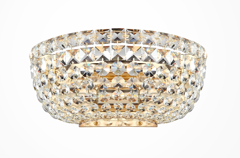 Stropní svítidlo, základna kov, povrch zlatá/nikl, stínítko sklo-detail krystalu, pro žárovku 2x60W, E14, 230V, IP20, tř.1. rozměry d=255mm, h=125mm.