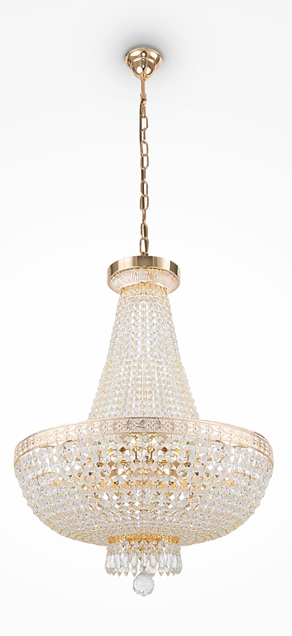Závěsné stropní svítidlo lustr, základna kov, povrch zlatá, stínítko s třásněmi z křišťálových ověsů, pro žárovku 6x60W/8x60W, E14, 230V, tř.1, IP20, rozměry dle typu, závěsný řetěz lze zkrátit