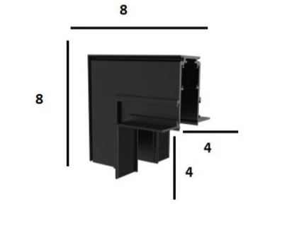 HOROS corner BI V II 80x80mm - Rohová L spojka 90°, vertikální odbočení, vestavného magnetického systému, materiál hliník, povrch černá, 48V, rozměry 80x80mm