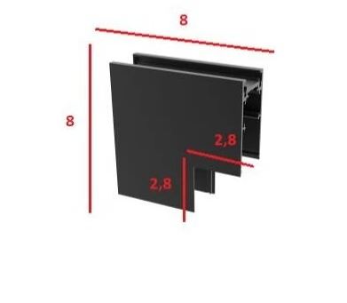 HOROS corner PV II 80x80mm - Rohová L spojka 90°, vertikální odbočení, přisazeného magnetického systému, materiál hliník, povrch černá, 48V, rozměry 80x80mm