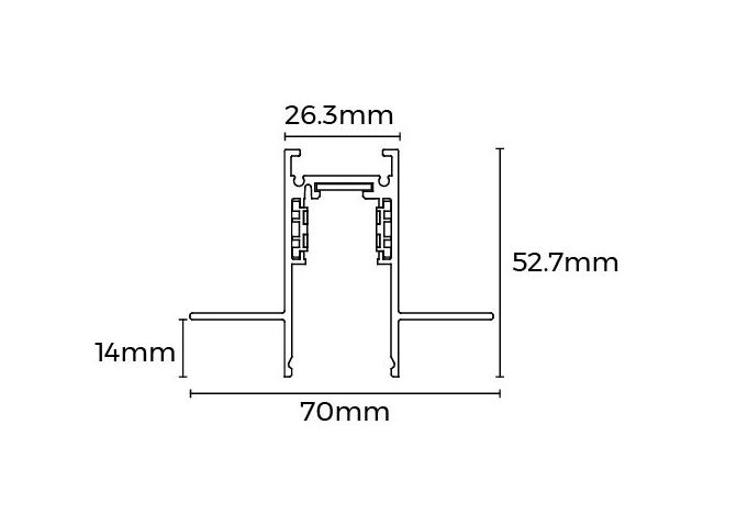 HOROS ECO TRACK RC MG 26,3x52,7, 48V - Podhledová vestavná lišta pro magnetický systém, materiál kov, povrch černá, 48V, rozměry 52,7x26,3mm, l=2000mm