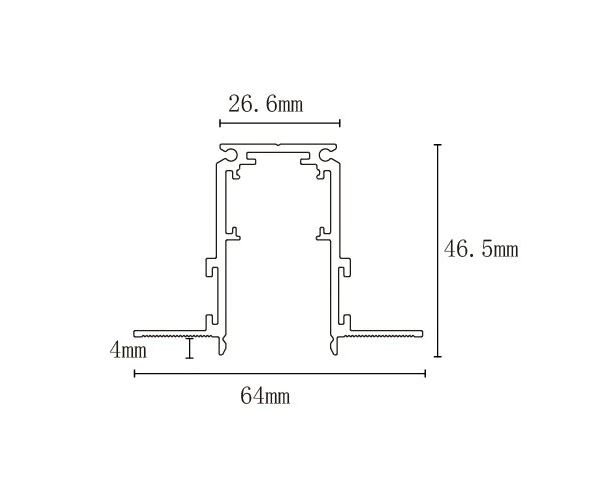 HOROS vestavná lišta 64x46,5, SDK 4mm - Vestavná lišta pro magnetický systém, materiál hliník, povrch černá, 48V, rozměry 64x46,5mm, l=2000mm, tloušťka sádrokartonu 4mm.