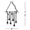 CANAPA SP6 - Závěsné svítidlo, rám kov, povrch černá, těleso dřevo s šesti konopnými lany, pro žárovku 6x15W, E27, 230V, IP20, tř.1, rozměry 800x50mm, vč řetězu l=1530mm lze zkrátit