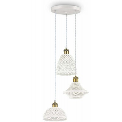 LUGANO - Závěsné svítidlo, těleso kov, povrch bílá a antická mosaz, stínítko keramika bílá, pro žárovku 3x60W, E27, 230V, IP20, tř.1, rozměry d=350mm, vč závěs kabelů s textilními úplety l=1180mm, lze zkrátit.