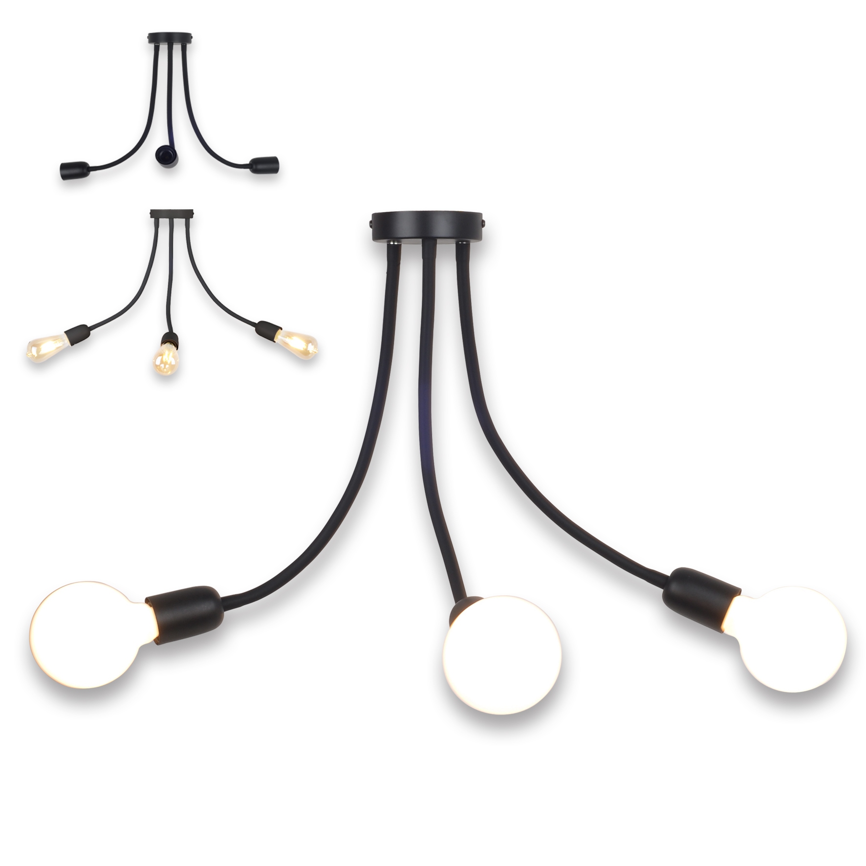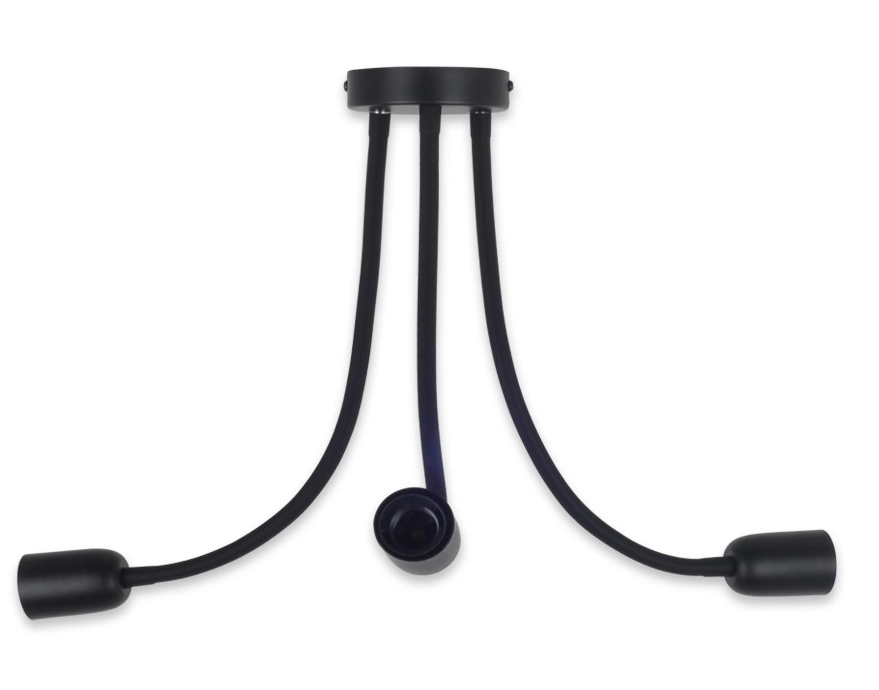 Stropní nebo nástěnné svítidlo s objímkou, nastav směr svícení, husí krk, těleso kov, povrch bílá/černá, pro žárovku 3x40W, E27, 230V, rozměry d=900mm, h=450mm.