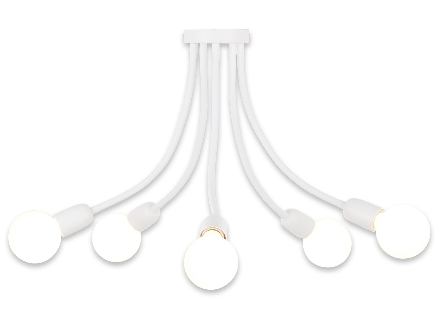 Stropní nebo nástěnné svítidlo s objímkou, nastav směr svícení, husí krk, těleso kov, povrch bílá/černá, pro žárovku 5x40W, E27, 230V, rozměry d=900mm, h=450mm.