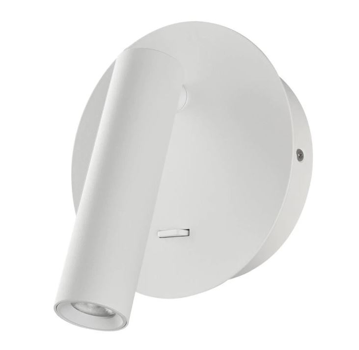 Nástěnné bodové svítidlo, nast. směr svícení, těleso kov, povrch bílá/černá, LED 5W, 430lm, teplá 3000K, 230V, IP20, tř.1, rozměry d=120mm, h=115mm, vč vypínače na tělese.