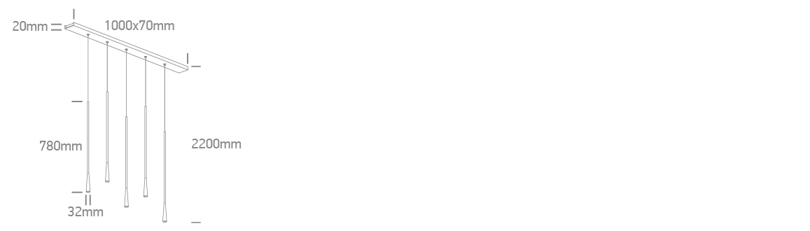 JOE HL 5x5W - Závěsné bodové svítidlo, lustr, základna a těleso hliník, povrch černá, LED 5x5W, 1500lm, teplá 3000K, Ra90, 230V, IP20, tř.2, rozměry 1000x70mm, vč. závěsného kabelu l=2200mm, lze zkrátit