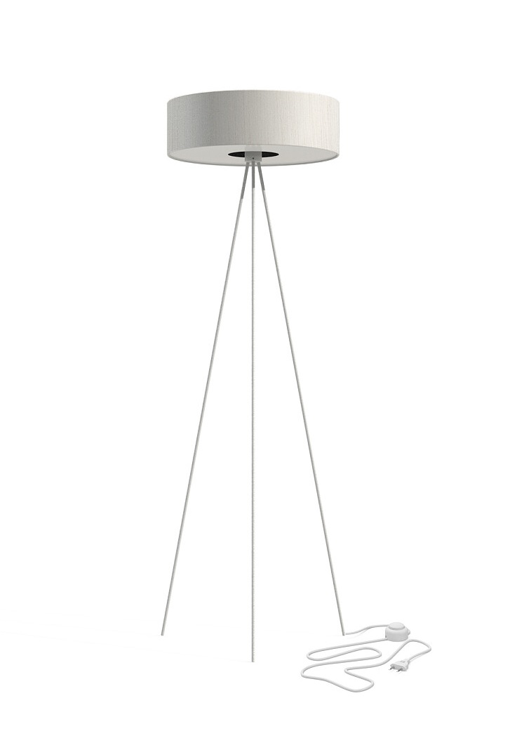 Stojací lampa, těleso kov/plast, stínítko tkanina, povrch bílá nebo černá, pro žárovku 3x25W, E27, 230V, IP20, tř.1, rozměry d=500mm, h=1540mm, přívodní kabel l=1600mm, vč vypínače na kabelu