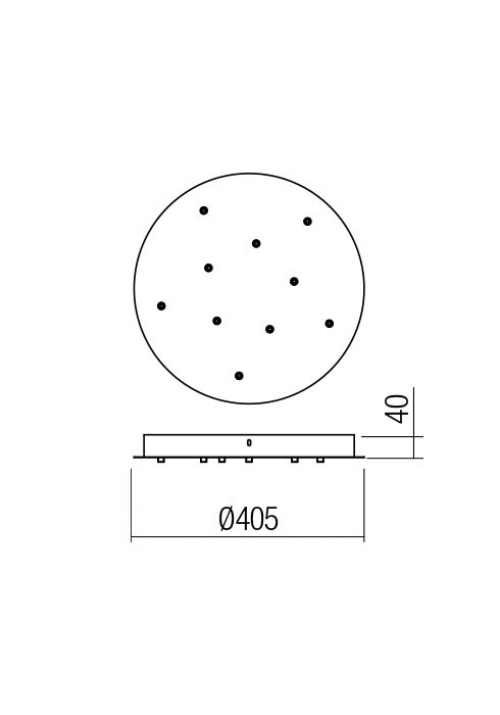 Stropní krytka pro 10 kabelů, pro napájení svítidel, těleso kov, povrch bílá, kávová nebo černá, 230V, tř.1, rozměry d=405mm, h=40mm, průměr otvoru pro kabel je 5mm
