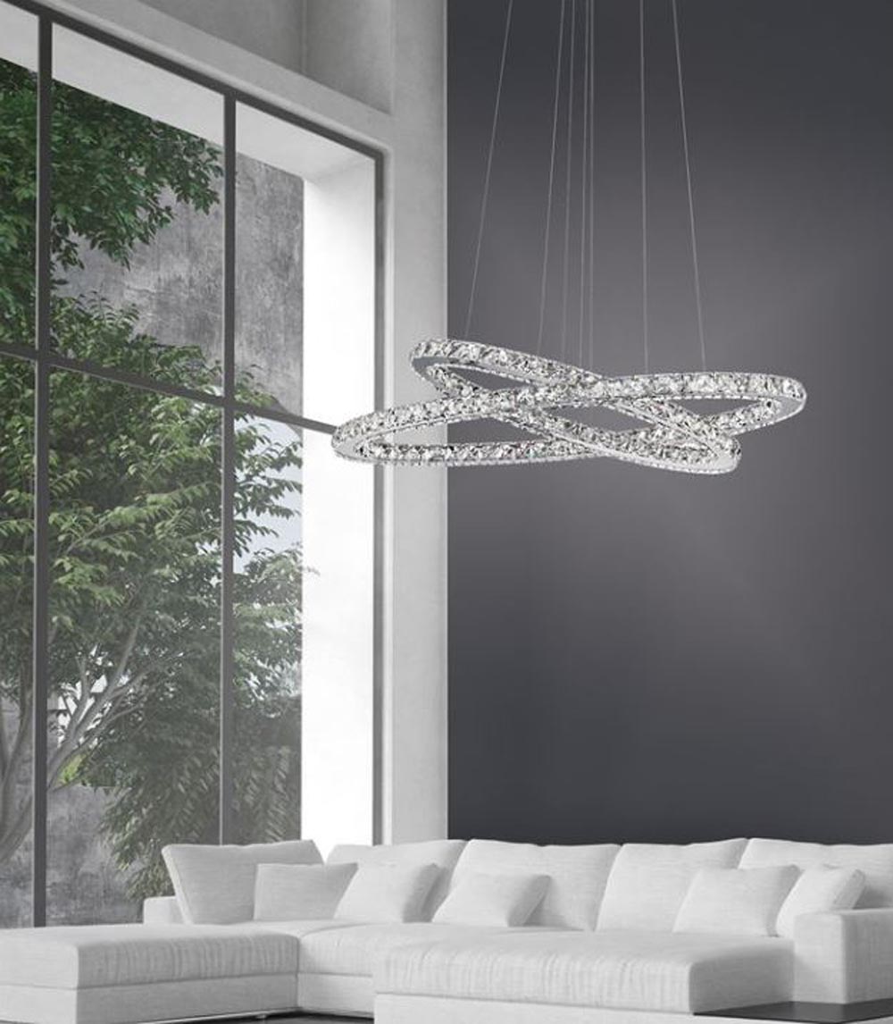 CELINE - Závěsné svítidlo, nastav směr svícení, základna hliník, povrch chrom lesk, difuzor sklo krystaly, LED 1x52W, teplá 3000K, 3120lm, 230V, IP20, rozměry l=850mm w=420mm, vč.závěsu h=1200mm, lze zkrátit