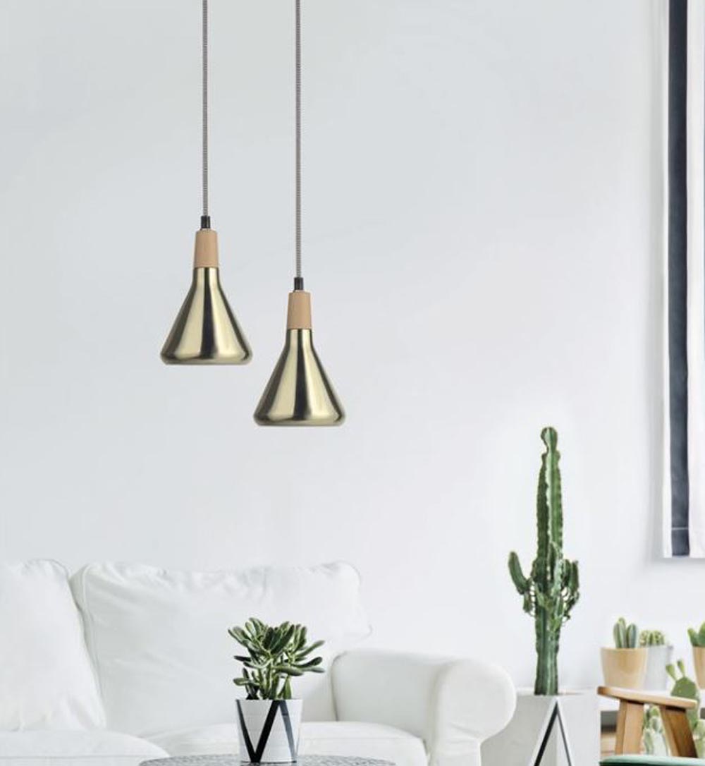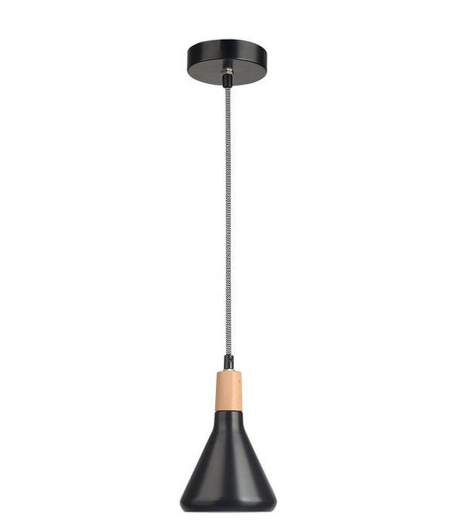 Závěsné svítidlo, základna kov, stínítko kov s přírodním dřevěným detailem, povrch černá, bílá, nikl, měděná, mosaz lesk, pro žárovku 1X25W, E14, 230V, IP20, tř.1, rozměry d=125mm h=200mm, vč.závěsného kabelu l=1200mm, lze zkrátit